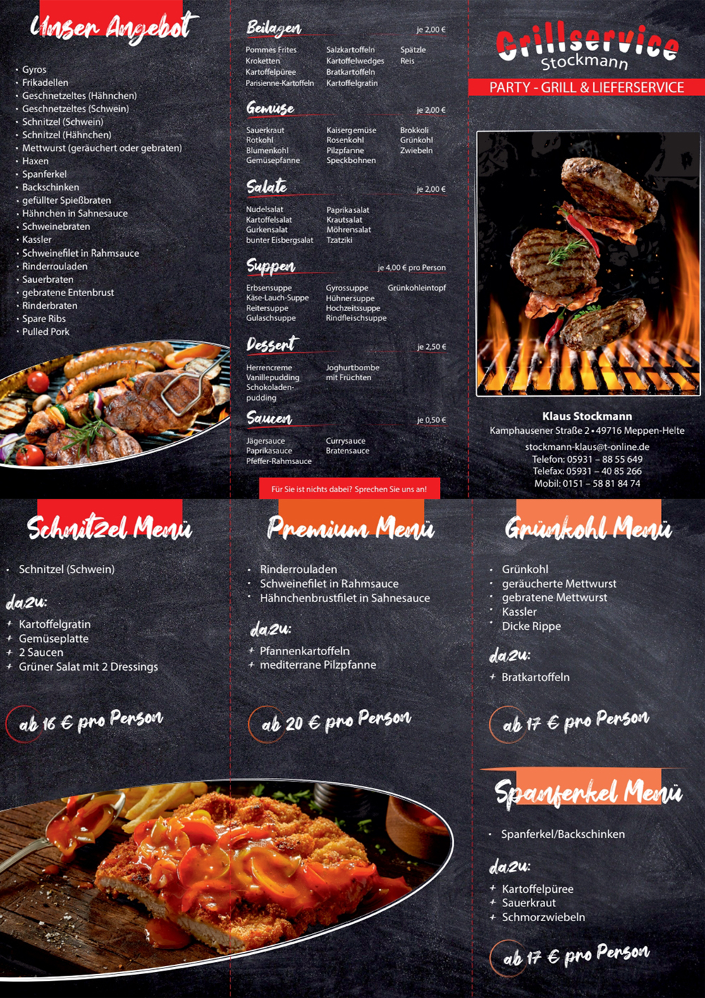 Seit über zwei Jahrzehnten stehen wir für hochwertigen Party- und Grillservice im Raum Meppen und darüber hinaus. Mit unserem Catering-Angebot liefern wir nicht nur Speisen, sondern auch Begeisterung. Ob rustikal oder gehoben, Buffet oder Live-Grillstation – unsere Leistungen passen sich Ihrer Veranstaltung an. Unser Team bringt Erfahrung, Logistik und Leidenschaft mit, um Ihr Event reibungslos umzusetzen.